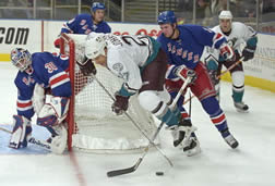 dos Rangers, atira Dan Hinote, dos Avs, ao chão (Ed