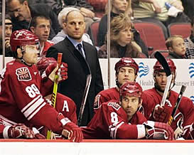 FUTURO SOMBRIO Tocchet, na foto atrás dos jogadores, pode ter de pagar fiança para poder voltar a Phoenix (Deirdre Hamill/Arizona Republic - 20/12/2005)