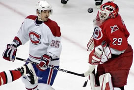 (35), e depois no goleiro do Caroline Hurricanes, Martin Gerber,